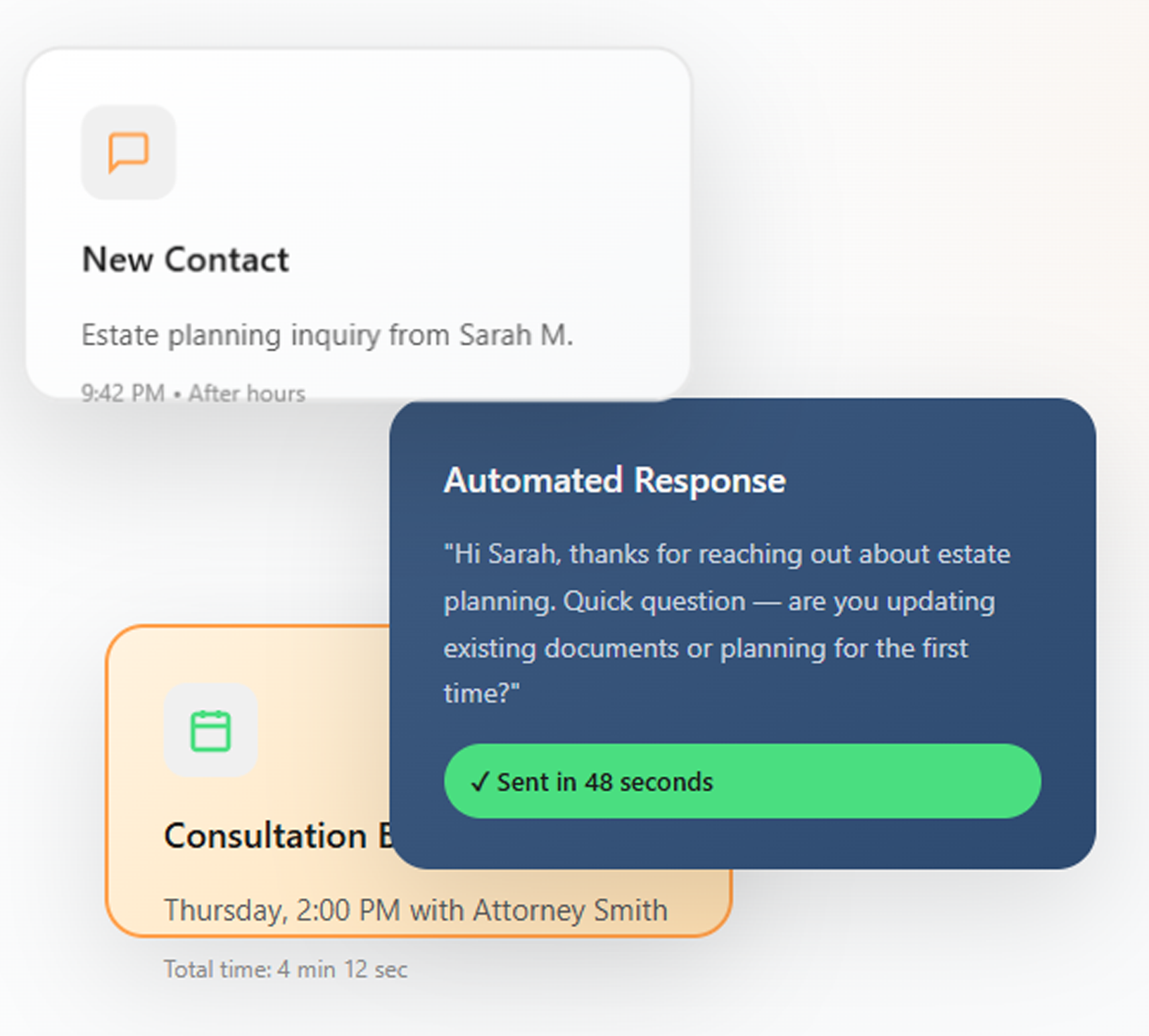 A prospect fills out your contact form at 9 PM. You email them back the next morning. They've already booked consultations with two other firms.